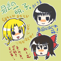 pixivのプロフアイコン用に描いた菊とジタンと霊夢。